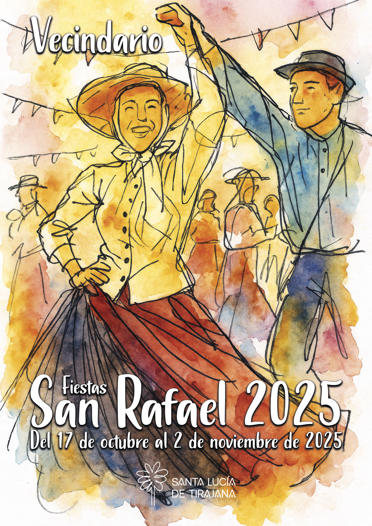 El jurado estaba compuesto por un equipo de personas del área de Festejos y un diseñador gráfico de la Gerencia de Cultura y Deportes de Santa Lucía de Tirajana. El cartel de Rada representa a dos personas con vestimenta típica canaria bailando un una plaza con las banderas de la fiesta, y debajo anunciando ‘Fiestas de San Rafael 2025 del 17 de octubre al 2 de noviembre de 2025’.