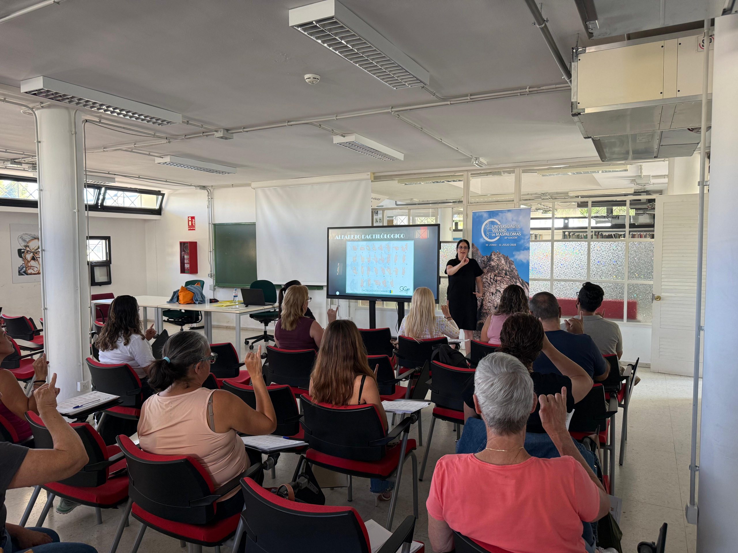 La Universidad de Verano de Maspalomas promueve, un año más, el aprendizaje de la ‘Lengua de Signos Española’, con un curso celebrado en el Centro Cultural Maspalomas, que ha contado con la asistencia de 17 personas.