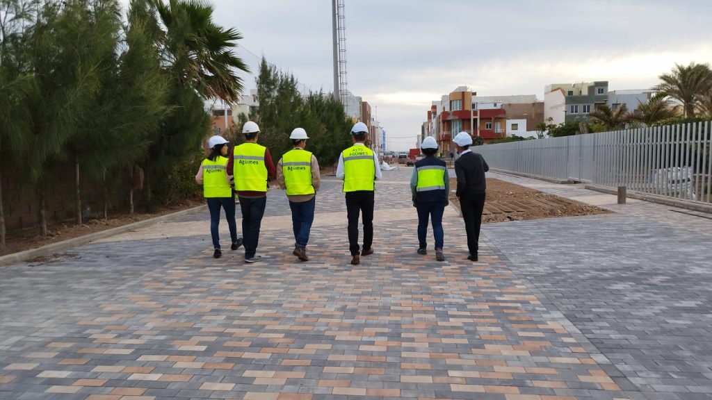 La anchura del nuevo espacio peatonal posibilitará además la celebración de actividades comerciales de diferente índole, que impulsarán la dinamización de la zona, algo que hasta ahora no era posible debido a los desfavorables vientos que arrecian habitualmente en la costa de Arinaga. El alcalde de Agüimes, Óscar Hernández, y los concejales de las áreas de Obras Públicas y Parques y Jardines, Rubén Romero y Juani Martel, respectivamente, visitaron las obras este miércoles, con el objetivo de verificar su correcta ejecución.
