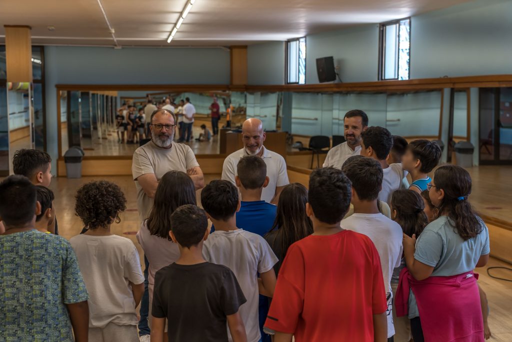 A las once de la mañana, ya con el gorro, las gafas y las cholas puestas, todo preparado para entrar en la piscina de la Unión, un grupo de chiquillos se encuentra con una visita sorpresa, el alcalde, Francisco García, el concejal de Deportes, Julio Ojeda y el edil de Servicios Públicos, José Miguel Vera, visitan el campus de verano para interesarse por su desarrollo y preguntarles si tienen propuestas para próximos años. A esta hora de la mañana toca piscina, pero en lo que queda de julio y también en agosto, hay tiempo para otras muchas actividades como lucha canaria, fútbol, baloncesto, atletismo, talleres de reciclaje, manualidades, cuenta cuentos… Los campus de verano en Santa Lucía de Tirajana son una oportunidad para mantener la actividad física, el deporte y los hábitos saludables, pero también para divertirse y para que madres y madres puedan tener conciliación laboral.