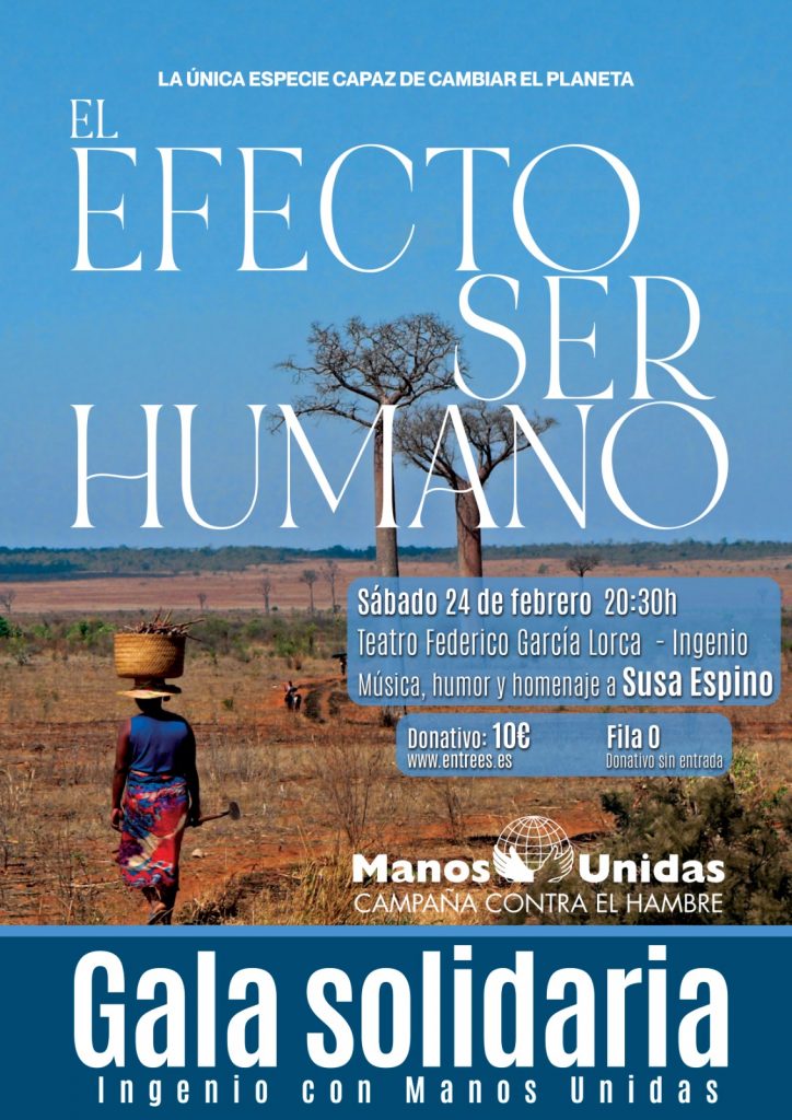 La Gala solidaria “Ingenio con Manos Unidas” vuelve a la Villa el sábado, 24 de febrero, a partir de las 20:30h, en el Teatro Federico García Lorca del Centro Cultural de Ingenio, tras algunos años de ausencia por la pandemia y por el fallecimiento de la que fuera una de sus artífices, María Jesús Espino “Susa”.