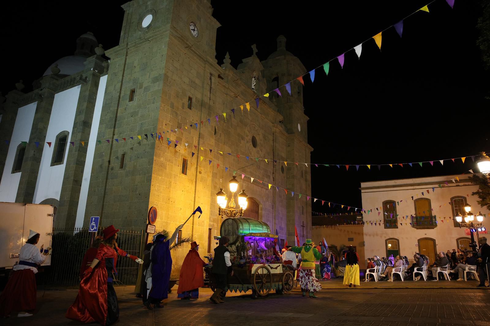 Las calles del casco histórico de Agüimes se convirtieron este martes en un escenario medieval donde más de un centenar de actores y actrices representaron la ‘Batalla de Don Carnal y Doña Cuaresma’, obra que simboliza el contraste entre el desenfreno de las carnestolendas y el paso a la abstinencia previa a la Semana Santa. Tras la escenificación tuvo lugar la celebración del tradicional Carnaval Antiguo, que volvió a reunir a decenas de mascaritas en la plaza del Rosario, en una noche de reivindicación cultural de la identidad carnavalera del municipio.