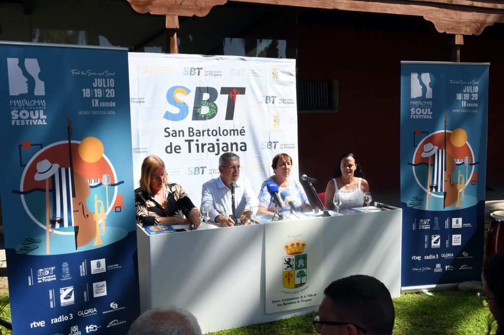El Maspalomas Costa Canaria Soul Festival, uno de los eventos musicales más relevantes de Europa en su género, se prepara para su novena edición con un cartel artístico de primer nivel que han presentado esta mañana en rueda de prensa el alcalde el alcalde de San Bartolomé de Tirajana, Marco Aurelio Pérez, y la directora del festival, Dania Dévora, acompañados por las concejala de Cultura, Igualdad, Juventud y Educación, Elena Álamo, y la concejala Esther Delgado.