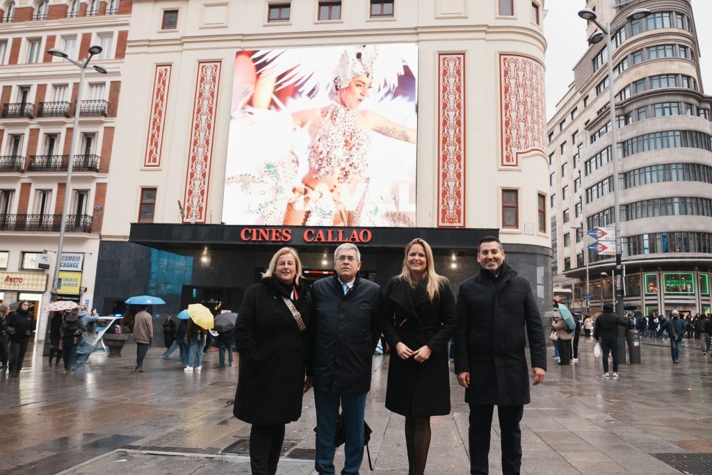 La acción continuó en la pantallas del Cine Callao que se convirtieron en el escenario perfecto para esta campaña, proyectando imágenes de los paisajes paradisíacos y la vibrante atmósfera del carnaval, invitando a los transeúntes a vivir la experiencia de “Carnaval, Sol y Arena. Siente Maspalomas”.