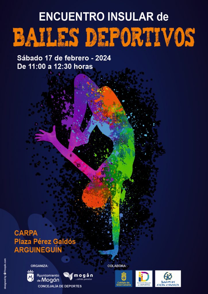 El municipio de Mogán acoge un año más el Encuentro Insular de Bailes Deportivos bajo la organización de la Concejalía de Deportes del Ayuntamiento de Mogán en colaboración con el Cabildo de Gran Canaria, en el marco del Programa de Juegos de Gran Canaria. Será el sábado 17 de febrero en la carpa permanente de la plaza Pérez Galdós, Arguineguín, cuando se den cita más de 200 participantes de entre 3 y 18 años procedentes de las escuelas deportivas municipales y clubes deportivos de la isla.