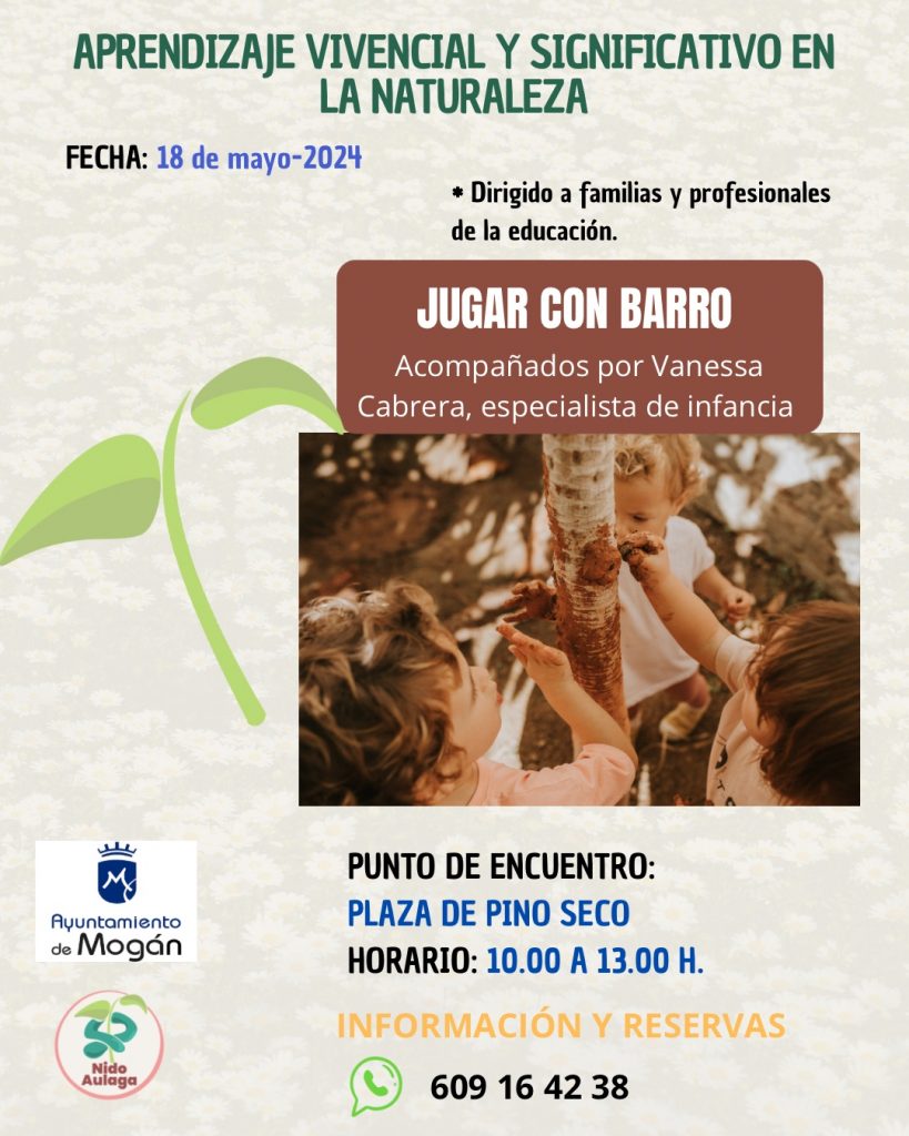 El Ayuntamiento de Mogán, en colaboración con el proyecto educativo Nido Aulaga, celebra desde el pasado mes de marzo el programa ‘Aprendizaje vivencial y significativo en la naturaleza’, compuesto de charlas y talleres mensuales dirigidos a las familias y profesionales del ámbito educativo. La finalidad, crear espacios que aporten estrategias para acompañar a la infancia, respetando sus ritmos y brindando oportunidades a través del juego y la exploración para potenciar los vínculos positivos, la convivencia, la autonomía y la creatividad.