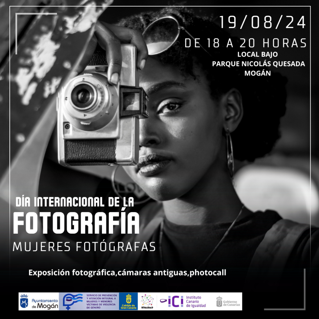 El próximo lunes 19 de agosto, en el marco del Día Internacional de la Fotografía, la Concejalía de Igualdad del Ayuntamiento de Mogán organiza una exposición del trabajo de 10 fotógrafas vecinas del municipio. En el evento se exhibirán igualmente cámaras antiguas y las personas asistentes podrán disfrutar de un photocall.