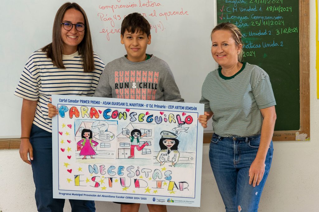 En el marco del Programa de Prevención del Absentismo Escolar del curso 2024/2025 impulsado por la Concejalía de Educación del Ayuntamiento de Mogán, ha tenido lugar un concurso dirigido a alumnado de 6º de Primaria del municipio, que han presentado sus propuestas de cartel para la campaña municipal de prevención del absentismo escolar. La concejala de Educación y Juventud, Emily Quintana, y la técnica municipal implicada en la materia, Cecilia Álamo, han  visitado los centros educativos para anunciar y premiar al alumno ganador del primer premio  así como a los que han logrado la segunda y tercera posición, además de entregar diploma a todos los y las que han participado.