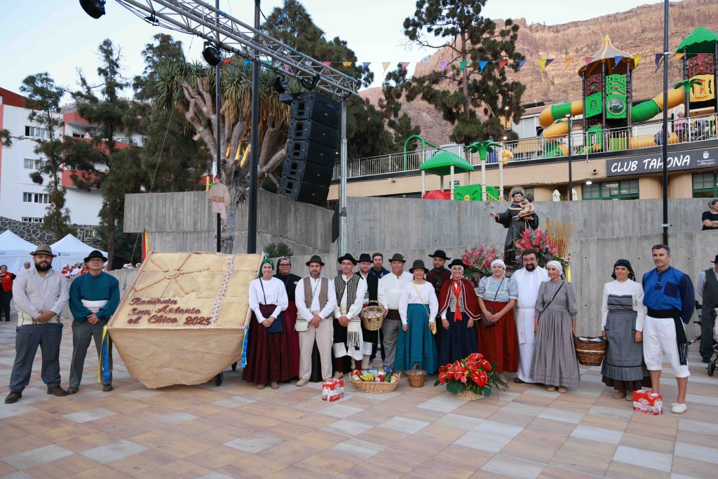 La Misa del Romero arrancó a las 19:30 horas con el acompañamiento musical del Área de Folclore de las Escuelas Artísticas de Mogán. El fuerte repique de campanas anunció el fin de la ceremonia, estallando los presentes en vítores y aplausos para San Antonio ‘El Chico’ que salió al pórtico del templo junto a la Agrupación Folclórica Sabinosa, de El Hierro, que con pitos, chácaras y tambores escoltó la imagen hasta el Parque Nicolás Quesada. Tras esta, la alcaldesa de Mogán, Onalia Bueno, que como cada año, aprovechó la ocasión para pedir salud y paz para todos y todas.