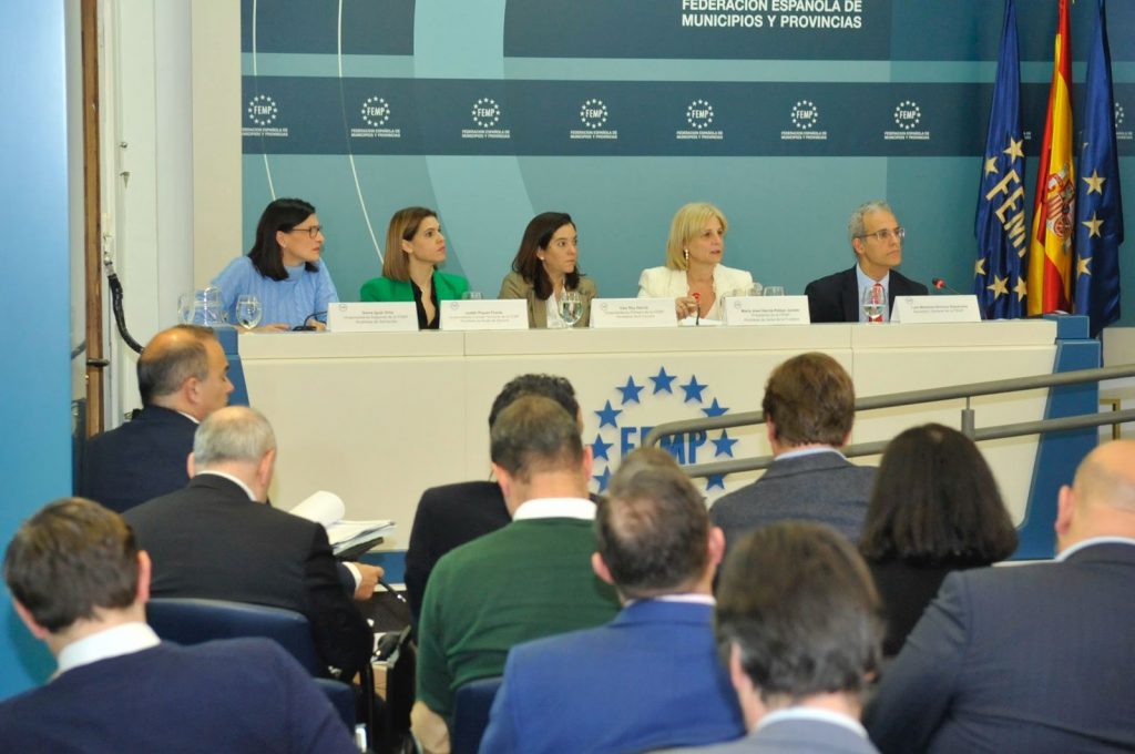 La alcaldesa del municipio tinerfeño de Candelaria y presidenta de la Federación Canaria de Municipios (FECAM), Mari Brito, y el alcalde de Agüimes y vicepresidente primero de este organismo, Óscar Hernández, participaron este martes, en representación de los 88 municipios de Canarias, en la reunión del Consejo Territorial de la Federación Española de Municipios y Provincias (FEMP). Formado por apenas cien alcaldes y alcaldesas, el Consejo Territorial es el principal órgano de gobierno entre asambleas de esta federación, que aglutina y defiende los intereses de los 8.132 municipios repartidos por toda la geografía española.