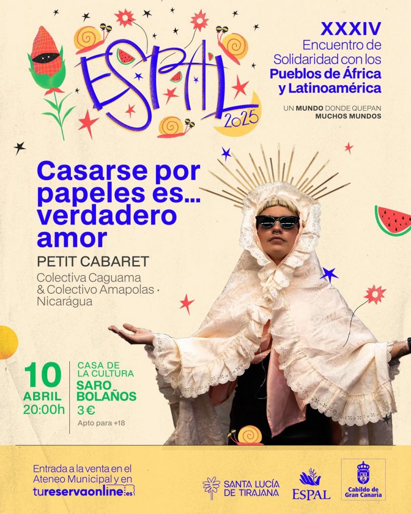 Además del Foro también están programados otros espectáculos en la línea de pensamiento crítico del ESPAL como la perfomance participativa ‘Somos pella de gofio’ de la artista, divulgadora e investigadora Daniasa Curbelo, que tendrá lugar el miércoles 9 de abril a las 17 horas en la sala Janina del teatro Víctor Jara. El jueves 10 de abril a las 19 horas el colectivo La Dupa representará la pieza de creación colectiva ‘La danza que hace llorar a las nubes’, el mismo día a las 20 horas, también en la Casa de la Cultura Saro Bolaños el colectivo Caguama y colectivo Amapolas de Nicaragua ofrecerán el petitcabaret ‘Casarse por papeles es…verdadero amor’. El viernes 11 de abril a las 20.30 Abubukaka ofrecerá el espectáculo podscastico teatral ‘Vamos a odiarnos’.