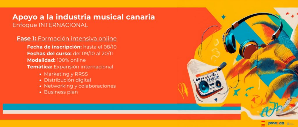 Proexca lanza el primer programa de apoyo a la internacionalización de la industria musical de Canarias. Este proyecto piloto busca apoyar al sector en su crecimiento y desarrollo en mercados nacionales e internacionales, dándoles las herramientas y nociones necesarias para este objetivo.