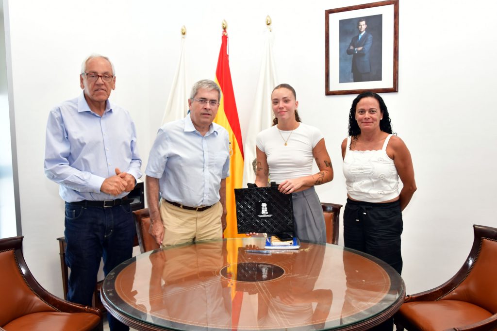 La joven karateca del municipio de San Bartolomé de Tirajana Indira Zúñiga García ha sido recibida por el alcalde Marco Aurelio Pérez Sánchez junto al concejal de Deportes, Ramón Suárez Ojeda, y la concejala delegada de Educación, Cultura y Juventud, Esther Delgado. Han querido agradecerle el extraordinario rendimiento demostrado en la temporada 2023-2024 y su importante trayectoria de éxitos internacionales, que la están convirtiendo en un referente deportivo y social para la vecindad del municipio, sobre todo para las nuevas generaciones.