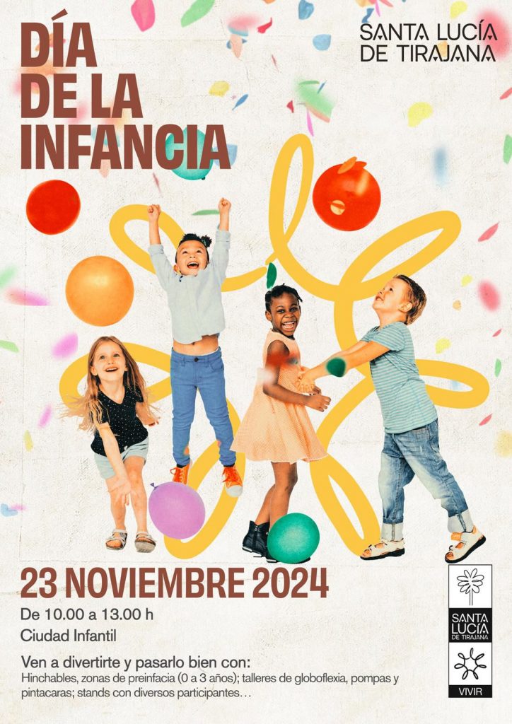 Santa Lucía de Tirajana, municipio comprometido con la infancia y la promoción de los derechos de los niños y niñas a nivel local, celebrará el Día de la Infancia con una jornada llena de actividades para los más pequeños el próximo sábado 23 de noviembre. Este evento, pensado para que los niños y niñas disfruten de su día de forma especial, contará con múltiples opciones de entretenimiento para toda la familia.