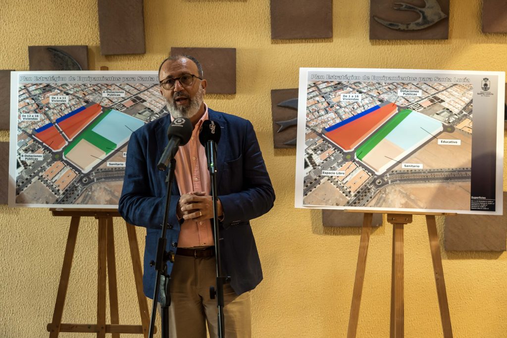 El alcalde de Santa Lucía de Tirajana, Francisco García, presentó este viernes una propuesta de plan estratégico de equipamientos para el municipio que realiza el grupo de Gobierno tras la  compra de suelo realizada por el Ayuntamiento. En los terrenos  se podría construir un Centro Integrado de Formación Profesional, el tercer centro de salud del municipio, promociones de viviendas y un centro sociosanitario. El Ayuntamiento adquirió recientemente 53.000 metros cuadrados que estaban valorados en 2.4 millones pero el consistorio logró comprarlos a la Sociedad de Gestión de Activos Procedentes de la Restructuración Bancaria (SAREB) por 1.600.000 euros.