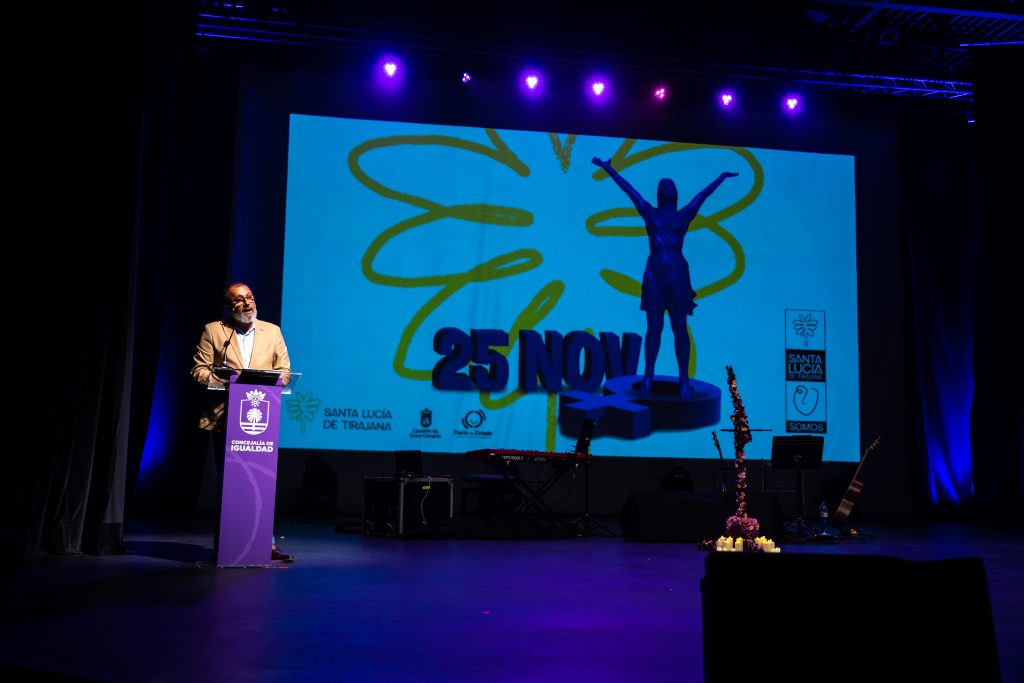 El alcalde de Santa Lucía de Tirajana, Francisco García, hizo un llamamiento al compromiso de toda la sociedad y las instituciones contra la violencia machista porque “Es una responsabilidad de todos y todas trabajar para que el grito del 25 de noviembre “Ni una más”, sea una realidad”. García realizó estas manifestaciones en el Acto Institucional contra la violencia de género celebrado la noche de este jueves en el teatro Víctor Jara. En el acto se rindió homenaje y se dijo el nombre de las 40 mujeres, 10 menores y un joven que este año 2024 han muerto en España víctimas de la violencia de género. La periodista Wendy Fuentes presentó el acto en el que también intervino la concejala de Igualdad y Diversidad, Olga Cáceres, y se celebró un espectáculo musical.