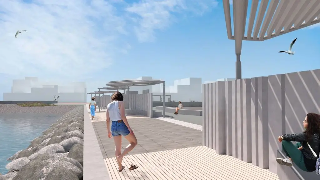 El ingeniero de Caminos, Canales y Puertos de la empresa Rabadán17, Alejandro González, presentó el “Estudio y proyecto de intervención para el acceso a la playa al sur del dique”, que contempla la instalación de una rampa en el paseo marítimo, una estructura con tarimado en dos niveles y una escalera en el muelle existente, acabadas con material antideslizante. El propósito de esta intervención es mejorar la accesibilidad, facilitando el acceso al baño tanto a bañistas como a personas que deseen disfrutar de la zona de manera más cómoda y segura.
