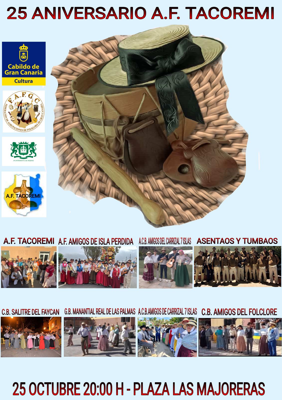 La Agrupación Folclórica Tacoremi conmemora su 25 aniversario con un gran festival que tendrá lugar este sábado, 25 de octubre, a partir de las 20:00 horas, en la Plaza del Pilar de Las Majoreras.