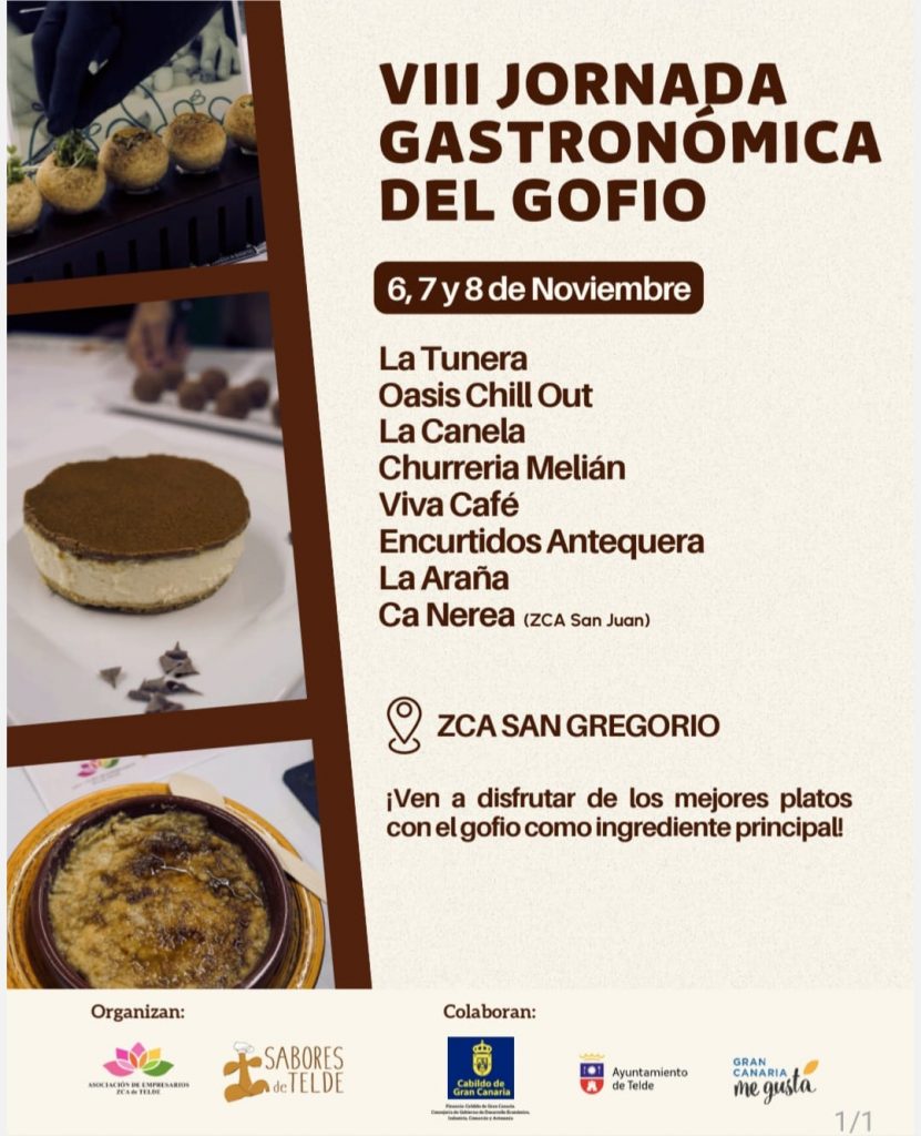 Esta edición tendrá lugar los días 6, 7 y 8 de noviembre, en la Zona Comercial Abierta (ZCA) de San Gregorio, con la participación de ocho establecimientos locales: La tunera, Oasis Chill Out, La Canela, Churrería Melián, Viva Café, Encurtidos Antequera, La Araña y Ca Nerea (ZCA San Juan). Estos ofrecerán gofio, como ingrediente principal, en recetas dulces, saladas y en multitud de formas diferentes para su degustación, tales como chocolate caliente con churros rebozados en gofio, tarta de queso y el producto estrella al horno, bocadillos, pechuga de pollo rellena del “polvo” canario por excelencia y salsa de curry y gran variedad de repostería sin gluten (esta última de la mano de Oasis).