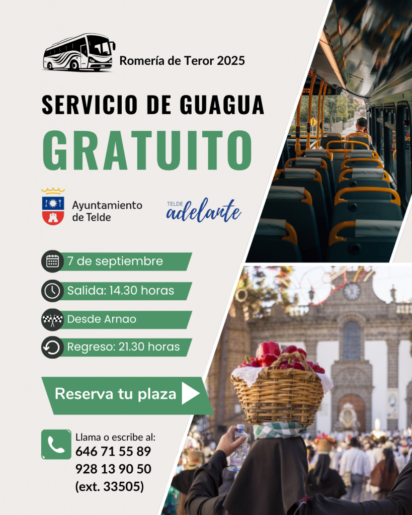 El Ayuntamiento de Telde, a través de la Concejalía de Festejos que coordina Miguel Rodríguez, vuelve a poner a disposición de la ciudadanía un servicio especial de transporte gratuito con motivo de la Romería Ofrenda a la Virgen del Pino en Teror, que se celebrará el próximo domingo 7 de septiembre.