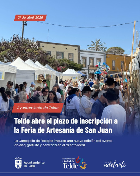 El Ayuntamiento de Telde vuelve a apostar por una de las citas más emblemáticas de sus fiestas patronales con la puesta en marcha de la Feria de Artesanía de San Juan Bautista 2026. La Concejalía de Festejos, que dirige Miguel Rodríguez Marchena, ha aprobado las bases que regulan la participación en este evento, que se celebrará los días 23 y 24 de junio en la Plaza de San Juan.