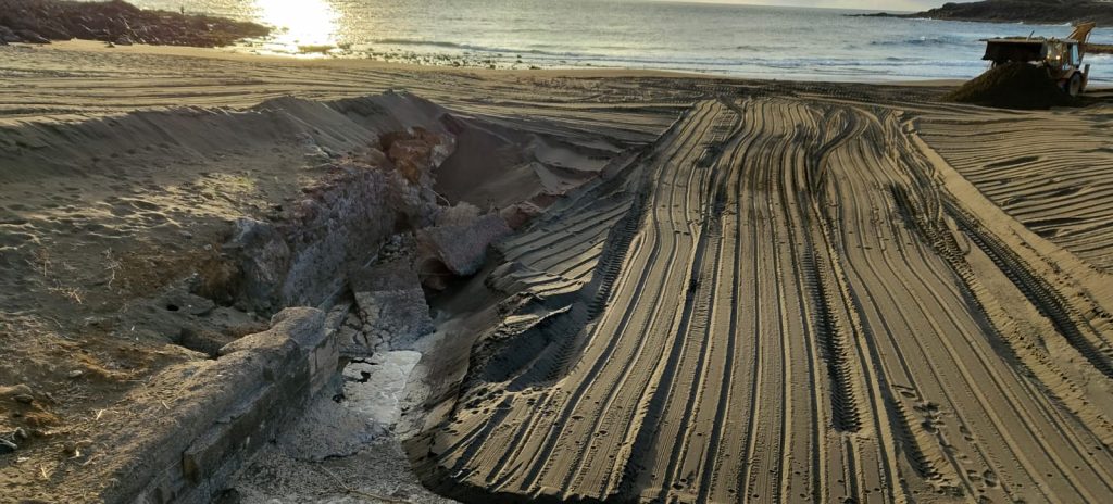 Para llevar a cabo estos trabajos, el Ayuntamiento puso a disposición el tractor del área de Servicios Municipales y el apoyo del personal de convenio de Playas, que ha desempeñado un papel fundamental en la ejecución de la intervención.