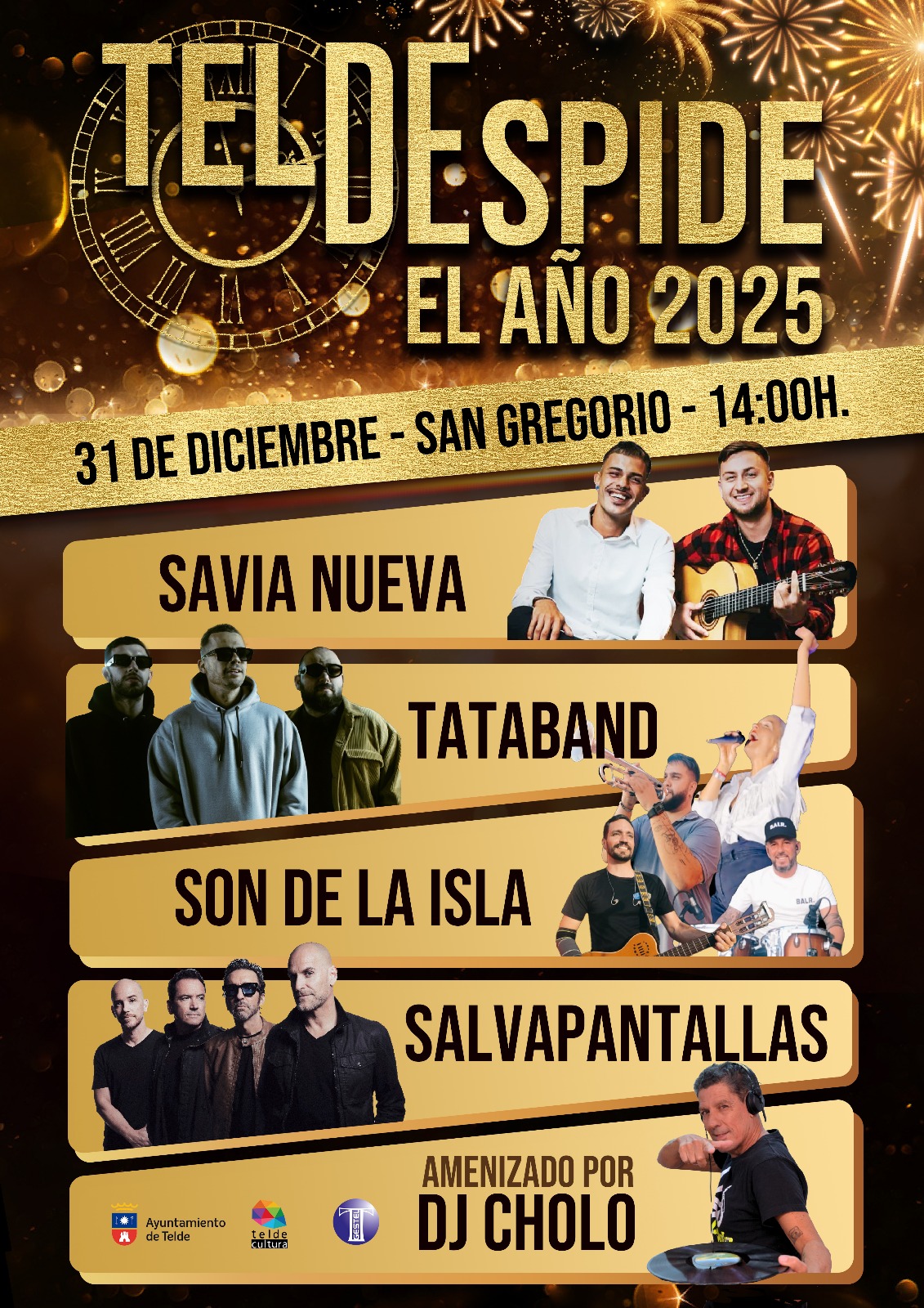 La ciudad de Telde celebrará por primera vez el evento TelDespide el año, una gran cita musical y festiva que tendrá lugar el 31 de diciembre, a partir de las 14.00 horas, en la Plaza de San Gregorio. La iniciativa nace desde la propuesta ciudadana y se perfila como uno de los encuentros más destacados de estas fiestas.