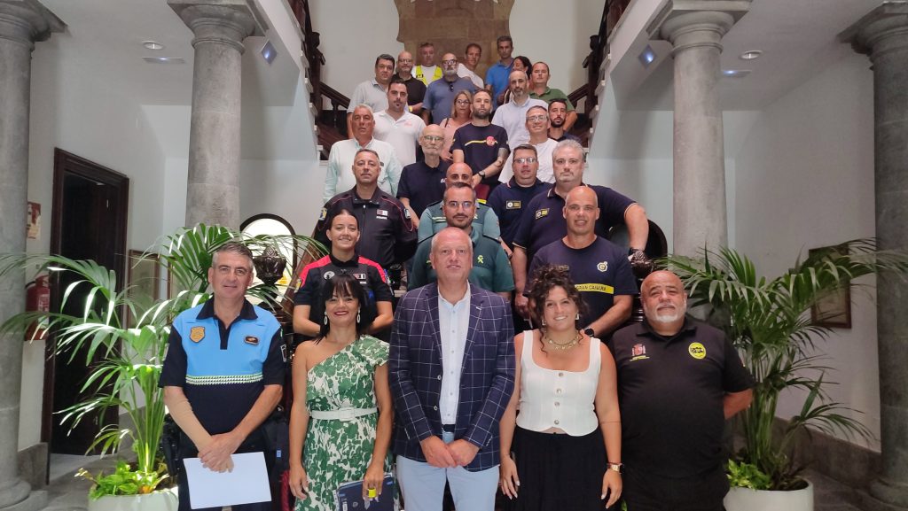 El alcalde de Teror, José Agustín Arencibia, presidió la reunión de coordinación de la seguridad de las Fiestas del Pino, que tuvo lugar en el salón de actos de la Casa Consistorial, con la participación de una treintena representantes de los dispositivos de Guardia Civil, Policía Local, Policía Nacional, Policía Canaria, Dirección General de Emergencias del Gobierno de Canarias, Centro Coordinador de Emergencias y Seguridad C.E.C.O.E.S. – 112, Protección Civil, Guaguas Global, Basílica del Pino, Servicio de Urgencias Canario, Provital, Consorcio de Emergencias, Cansegur, Unidad de Dron de la Policia de Telde, Pirotecnia El Pilar, Red Radio de Emergencias (Remer), y técnicos de Cabildo de Gran Canaria, Ayuntamiento de Teror, Ayuntamiento de Las Palmas de Gran Canaria y Ayuntamiento de Arucas.