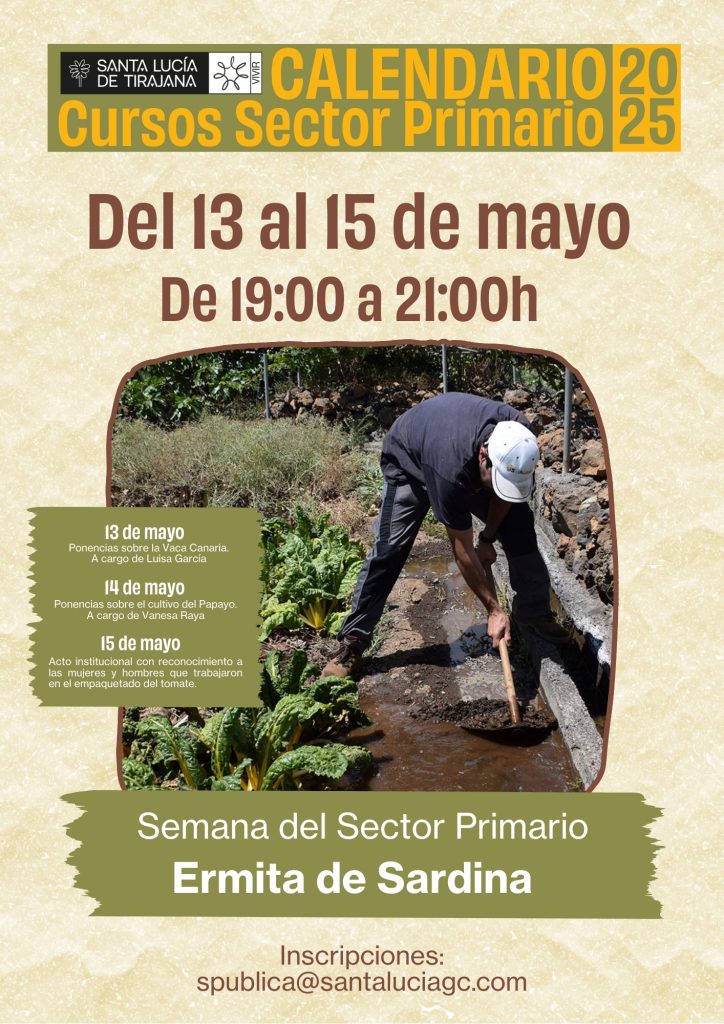 La Semana del Sector Primario forma parte del programa de fiestas de San Isidro Labrador en Sardina del Sur. Dentro del programa este miércoles 14 de mayo a las 18 horas está programado un Concurso de Cocina donde se premiará a la mejor ropa vieja. El viernes 16 por la tarde será la fiesta infantil con hinchables a partir de las 17 horas. Después, a partir de las 9 de la noche, habrá un concierto de Non Trubada en la antigua ermita de Sardina del Sur.