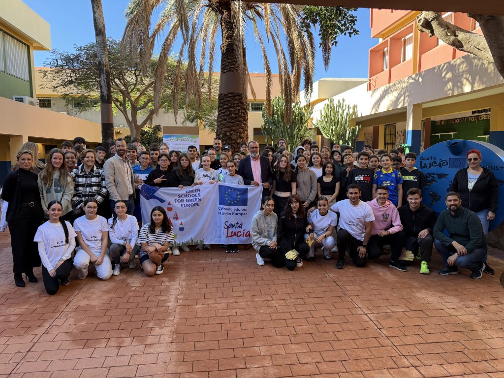 El alcalde de Santa Lucía de Tirajana, Francisco García, y el concejal de Educación, Mario Bordón, visitaron el IES Santa Lucía para mostrar su apoyo a este programa educativo y a las acciones a favor del medioambiente. El alcalde felicitó “al profesorado y alumnado por llevar adelante este programa que es muy importante para que la gente joven tomen conciencia de la necesidad de proteger el medioambiente, empezando por nuestra ciudad, para que podamos dejar a las nuevas generaciones un planeta mejor que el que hemos encontrado”. El concejal de Educación manifestó porque “desde el área de Sostenibilidad y el de Educación defendemos crear una sociedad  mejor a través de acciones como la que están haciendo hoy, y la mejor forma de hacerlo es apoyando una educación en valores, en la línea de este programa Erasmus”.