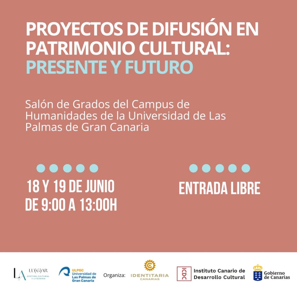 La Dirección General de Cultura y Patrimonio Cultural, a través del Instituto Canario de Desarrollo Cultural (ICDC), organiza las jornadas “Proyectos de difusión en patrimonio cultural: presente y futuro” del 18 al 19 de junio, de 9:00 a 13:00 horas, en el Salón de Grados del Campus de Humanidades de la Universidad de Las Palmas de Gran Canaria (ULPGC). Este ciclo de conferencias, de entrada libre, busca generar un espacio para compartir estrategias, experiencias y nuevas metodologías en torno a la divulgación del patrimonio cultural de Canarias.